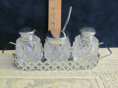 Title (ebay affiliate link): Vintage Salt And Pepper Shakers And Mustard 3 Pcs. On Silver Tray
