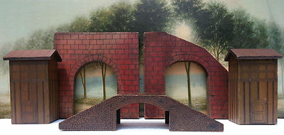 Title (ebay affiliate link): ANTIQUE FOLK ART Wooden BRIDGE Switching Towers Old Paint Red BRICK TUNNEL FACES