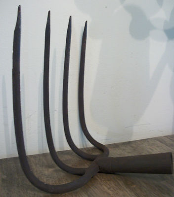Title (ebay affiliate link): Primitive Vintage Hay Rake Pitchfork-Tines-ANTIQUE-Yard/Garden Decor-9.5" x 8"