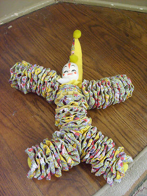 Title (ebay affiliate link): Handmade OOAK Cloth 18" Clown Jester Doll Yo Yo Fabric Plastic Face Vtg Folk Art