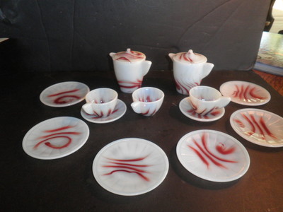 Title (ebay affiliate link): Nice group of Akro Agate Co. Childrens glass cups and plates c.1920's