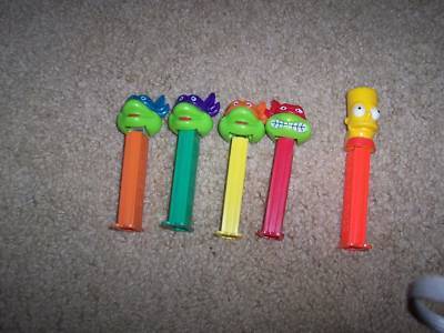 GROUP OF 4 TURTLES & A BART SIMPSON PEZ DISPENSER