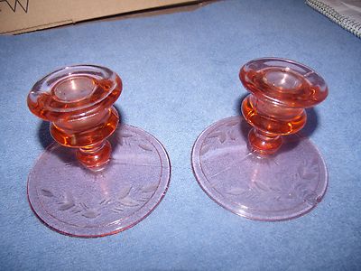 Title (ebay affiliate link): PINK DEPRESSION GLASS CANDLE STICK HOLDERS WITH ETCHED WHEAT DESIGN BEAUTIFUL