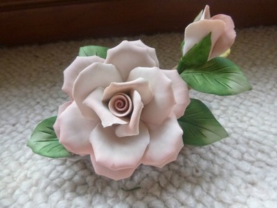 CAPODIMONTE ROSE WITH BUD PORCELAIN FIGURE
