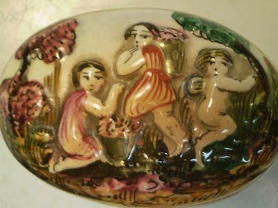 Title (ebay affiliate link): R. Capodimonte ring or trinket box 2.5 long marked with a crown and shield GB