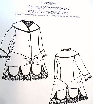 Title (ebay affiliate link): PATTERN FOR VICTORIAN DESIGN DRESS FOR 12"-13" ANTIQUE FRENCH DOLL
