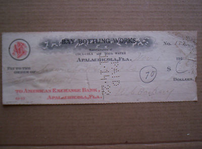 Vintage , 1922 Bay Bottling Works Appalachicola Fl Check