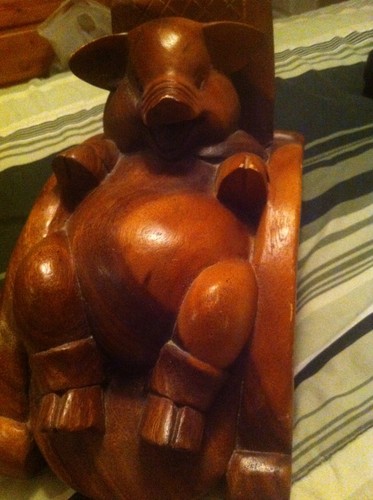 Vintage Solid Wood Hand Carved Pig In A Rocking Chair