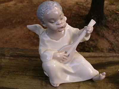 LLadro Black child angel lute player Musician figurene 5" tall
