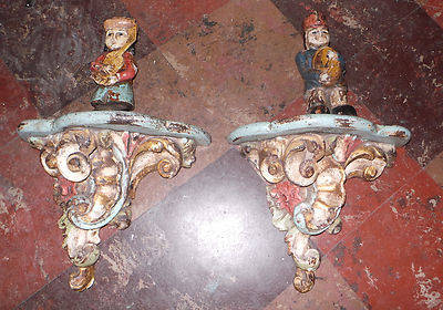 Pair wall shelf made in Spain Vergara-Art wood sculpture figures 1960's?