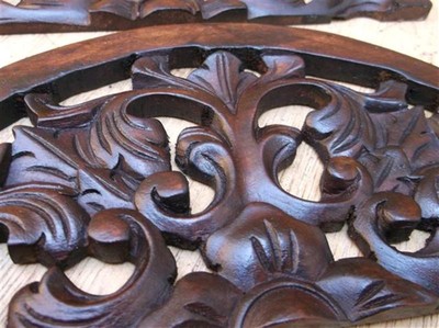 Pierced Carved Arch Shape Onlay Carvings Matched Pair