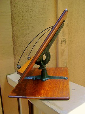 Title (ebay affiliate link): INDUSTRIAL ANTIQUE OAK IRON TABLE TOP SHEET MUSIC BOOK LIBRARY STAND! MILITARY?