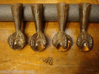 4 Antique CAST Iron GLASS Ball CLAW Feet for PIANO STOOL A. Merriam Co.
