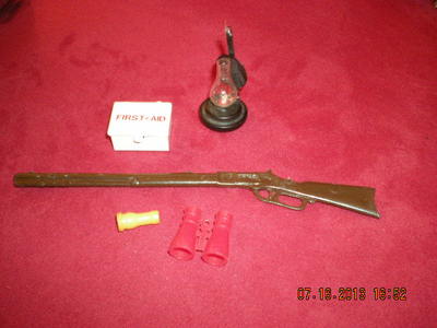 Title (ebay affiliate link): ANTIQUE DOLL HOUSE FURNITURE: Camping: Rifle, Lantern, First Aid Kit, Binoculars
