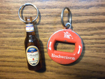 Vintage Michelob Ultra & Budweiser Bottle Opener Keychain (small print "ultra")