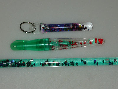 Title (ebay affiliate link): Vtg Space Tubes Wand Gravity Toy + Keychain & Light Up Floaty Pen Moon Stars