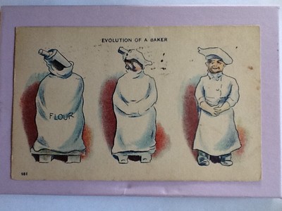 Evolution of a Baker Flour Sack and Rolling Pin to Person Postcard N404