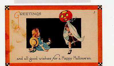 Early Gibson Halloween Postcard ~ Jol Pumkin Head Kids