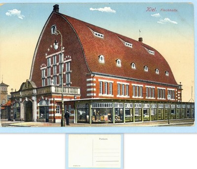 Title (ebay affiliate link): Old Card of red barn like building "Kiel Fischhalle"
