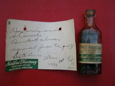 OLD MEDFORD PHARMACY BOTTLE AND PRESCRIPTION