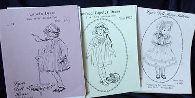 Title (ebay affiliate link): Lot 3 Lyn's Doll House Patterns for Antique Dolls Uncut
