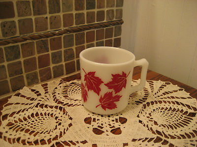 VINTAGE HAZEL ATLAS CHILDS KIDDIE MILK GLASS MUG RED MAPLE LEAVES LEAF NICE