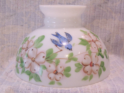 VINTAGE HAND PAINTED MILK GLASS HURRICANE LAMP SHADE
