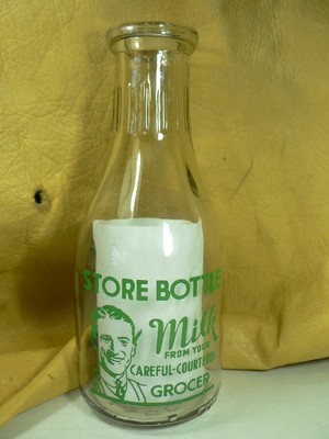Vtg Sanitary Dairy,Woodland,Calif.,1 Quart Glass,STORE BOTTLE,milk from Grocer