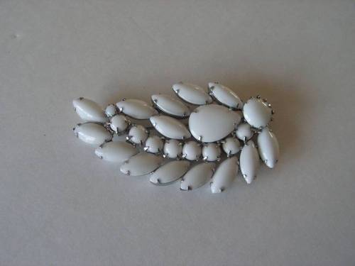 VINTAGE SIGNED WEISS WHITE MILK GLASS FLORAL BROOCH