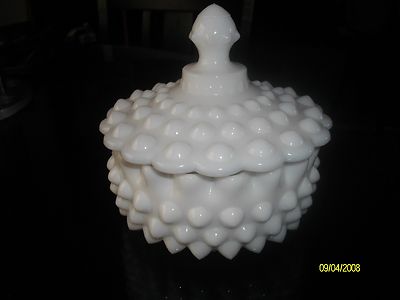 Title (ebay affiliate link): Fenton White Milk Glass Covered Candy Dish Very Nice, No Chips or cracks