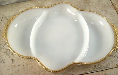 Title (ebay affiliate link): Fire King Anchor Hocking Divided White Milk Glass Serving Dish with Gold Trim