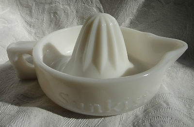 Vintage! White Milk Glass Antique "SUNKIST" GLASS JUICER GREAT Condition!