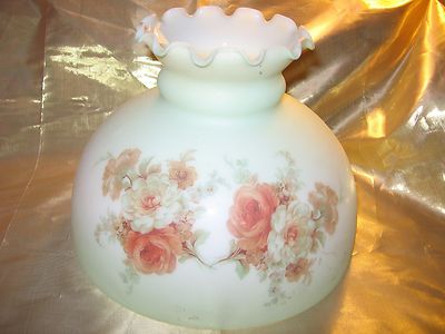Vintage GWTW Milk Glass Lamp Shade Green Frost - Peach & Green Floral 10" x 7"