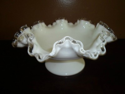 Title (ebay affiliate link): Fenton Milk Glass with Crystal Crimped Edging "Silver Crest" Compote Dish