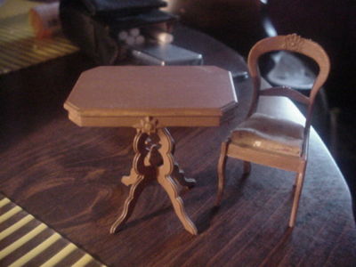DOLL HOUSE ANTIQUE TABLE AND CHAIR