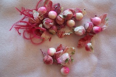 Antique Vtg Victorian Pink Leaves RoundFlowers Berries Millinery Doll Hat Dress