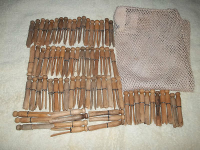 Title (ebay affiliate link): Antique Farmhouse Weathered Rustic Laundry Clothes Pins Lot of 74 with mesh bag
