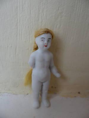 UNUSUAL ANTIQUE 2" FROZEN CHARLOTTE WITH LONG PLAIT