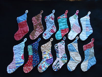 Title (ebay affiliate link): 12 VTG CUTTER QUILT CHRISTMAS SANTA STOCKINGS - SCRAPBOOKING