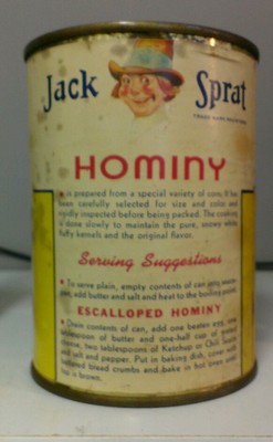 Title (ebay affiliate link): VTG Jack Sprat Foods Hominy Can Tin Original Paper Label Marshalltwon Iowa Empty