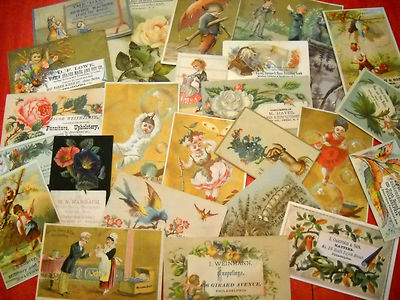 Trade Card Lot (50 cards) Advertising Furniture Clothes Jewelers Thread Pills#18