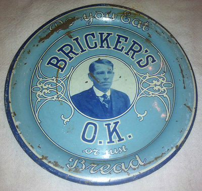 Title (ebay affiliate link): BRICKER'S O.K. BREAD TIN LITHO ADVERTISING TIP TRAY RARE ADV