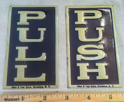 ANTIQUE TIN LITHO DOOR PUSH PULL SIGNS ALLEN & VAN DYKE BROOKLYN NY NEW YORK WOW