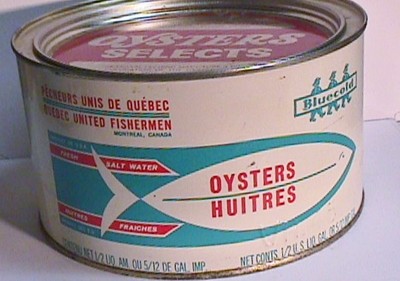 Title (ebay affiliate link): 1/2 GAL BLUECOLD SALT WATER OYSTERS TIN OYSTER CAN CANADA PACKED VA 45