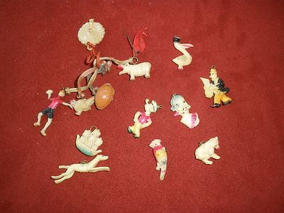14 VINTAGE CRACKER JACK CHARMS CELLULOID POPEYE, WIMPY, GREYHOUND, OTHERS