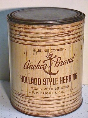 1 GAL CAN ANCHOR BRAND HOLLAND STYLE HERRING FISH NOT OYSTERS P V BRIGHT CHICAGO