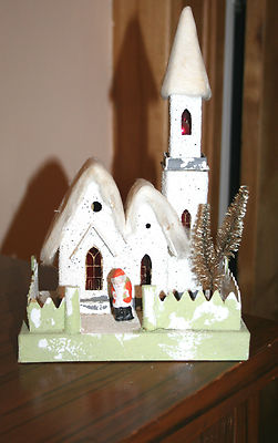 Title (ebay affiliate link): 1930s Large Church, Tower. Santa in Front. Very Elaborate. Japan