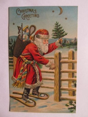 Antique Christmas Card Santa on Snowshoes
