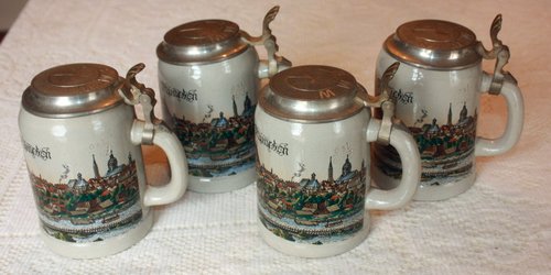 Title (ebay affiliate link): Set of 4 GERZ German Lidded Beer Steins BMW LOGO Pewter Lid Munchen W. Germany