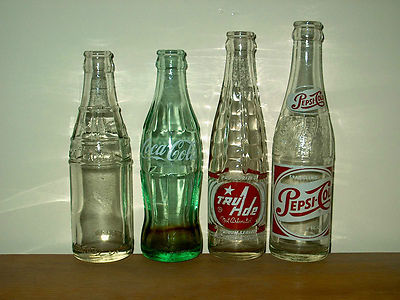 Title (ebay affiliate link): Lot of 4 Vintage Glass Soda Pop Bottles inc Pepsi, Coke and Tru Ade